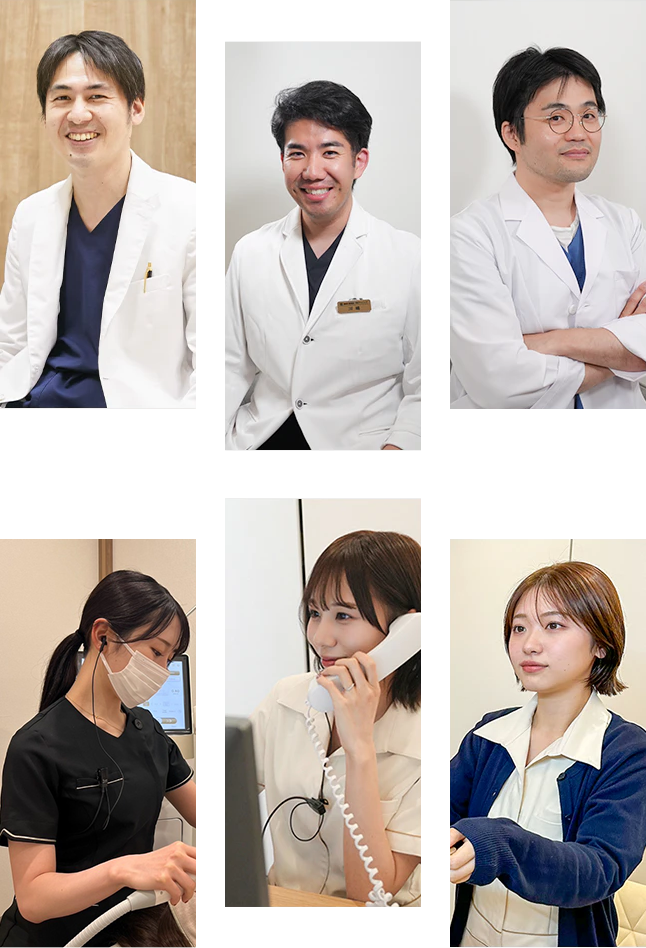 美容皮膚科として患者さんのさまざまなお悩みを解決するため、美容関連の専門スキルが高く、臨床経験が豊富な医師(皮膚科医、形成外科医、女医)・看護師が5~6名在籍しています。また、当院ではチーム医療を掲げており、各自の専門性を活かしつつスタッフ間の連携を密にして、患者さんへ適切な医療をご提供いたします。