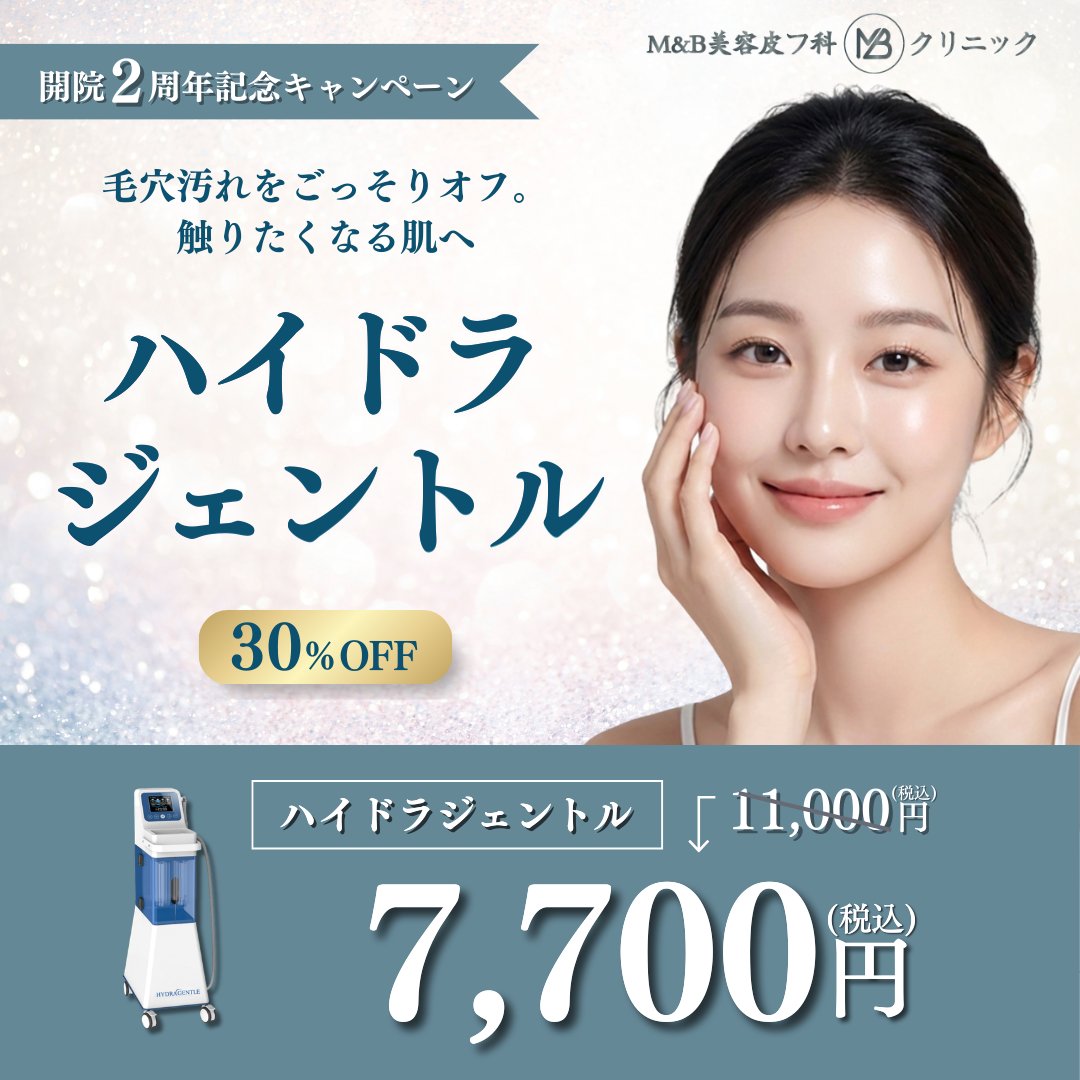 【開院2周年記念キャンペーン|2026年3月1日〜4月30日】ハイドラジェントルが30%OFF(全て税込)。毛穴汚れをごっそり…