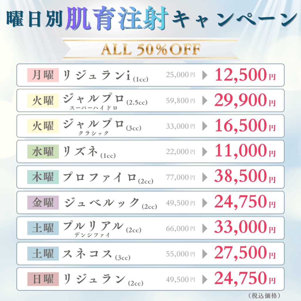 | リジュラン | 2cc(目元・全顔など部位設計) | 49,500円 |