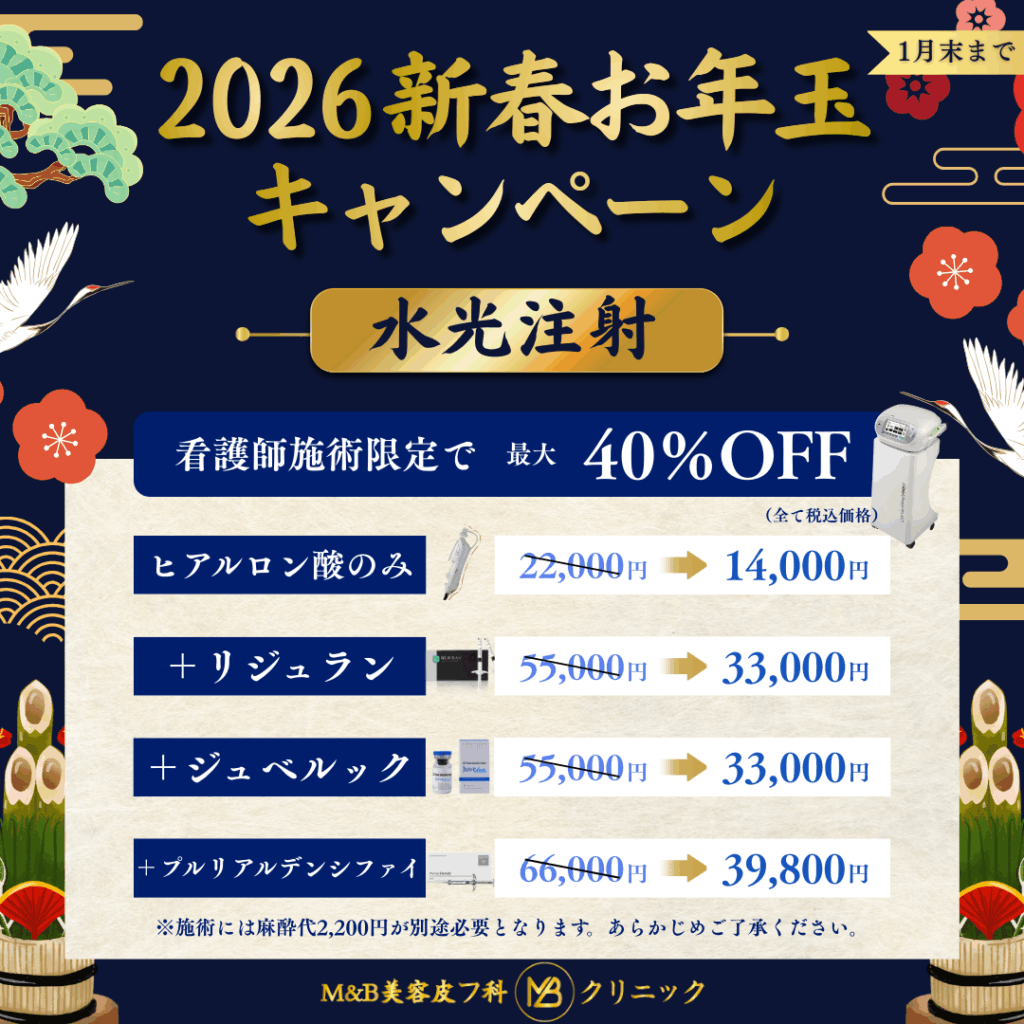 【2026新春お年玉キャンペーン】大阪で水光注射ならM&B美容皮フ科クリニック。1月末までの期間限定です。